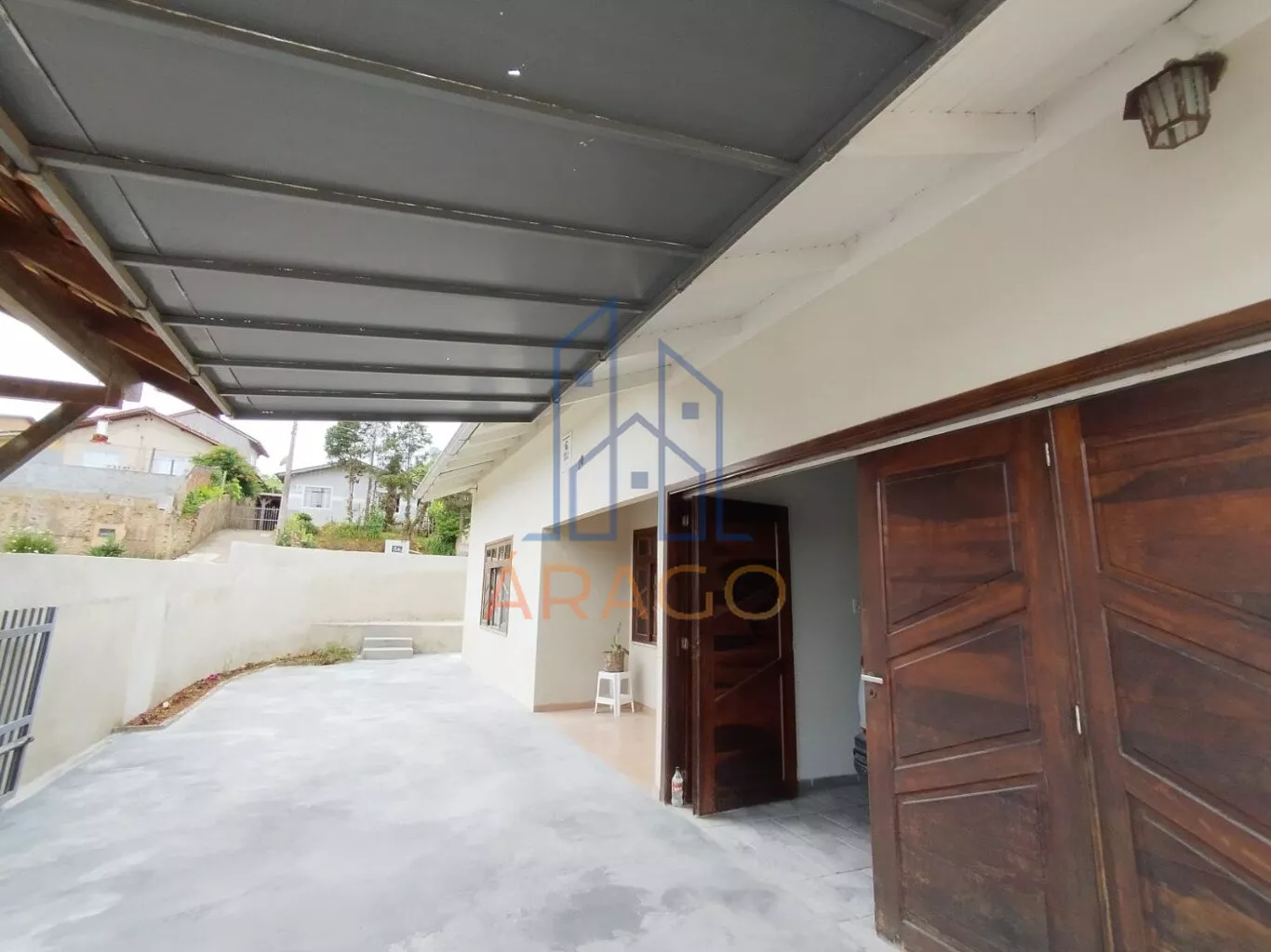 Garagem coberta com churrasqueira, perfeita para receber amigos;